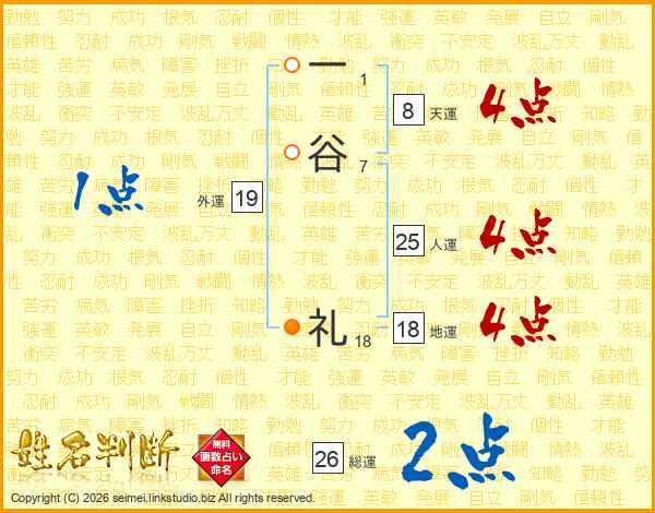 一谷礼さんの総運は26画の2点!