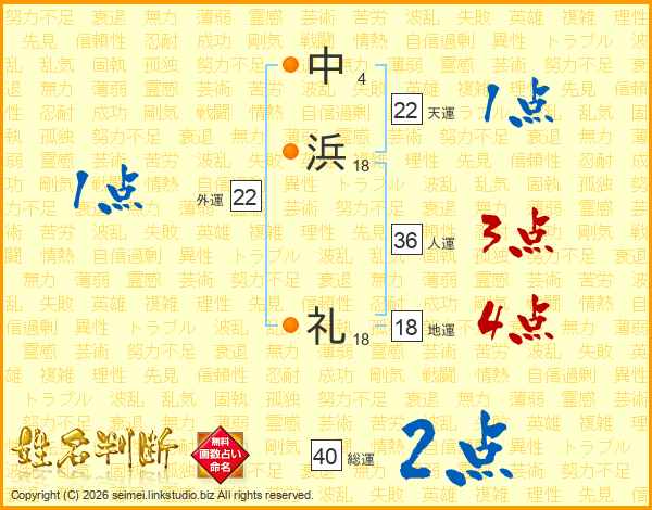 中(4画)浜(18画) 礼(18画)