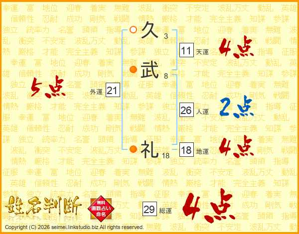 久武礼さんの総運は29画の4点!