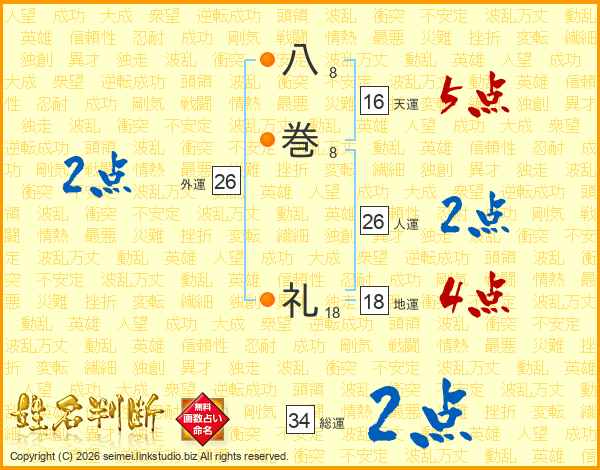 八巻礼さんの総運は34画の2点!