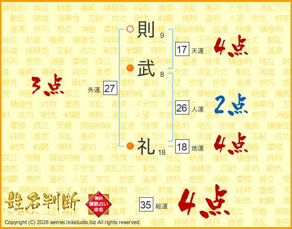 則(9画)武(8画) 礼(18画)