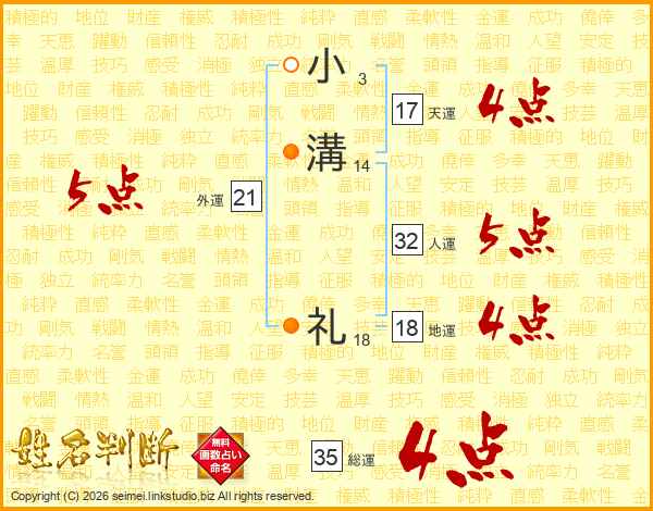 小溝礼さんの総運は35画の4点!