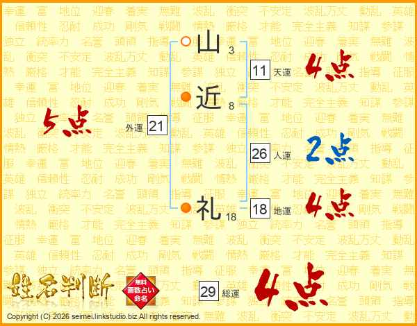山近礼さんの総運は29画の4点!