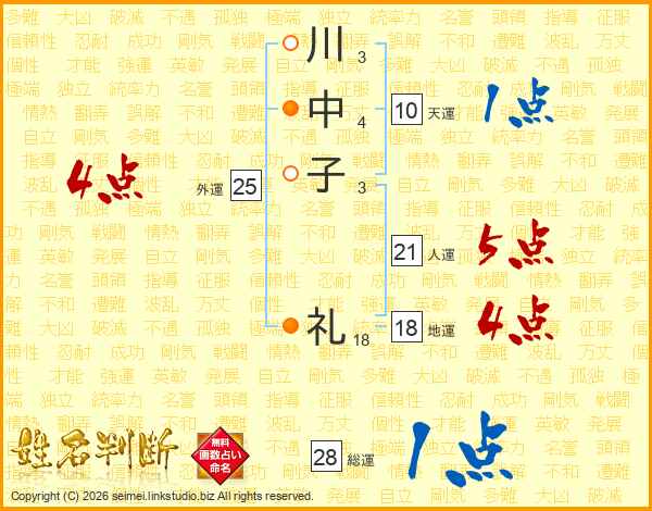 川中子礼さんの総運は28画の1点!
