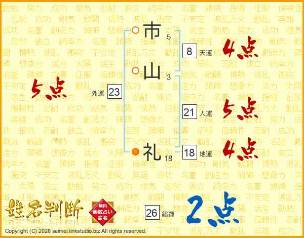 市山礼さんの総運は26画の2点!