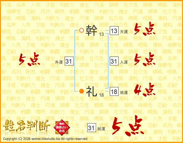 幹礼さんの総運は31画の5点!