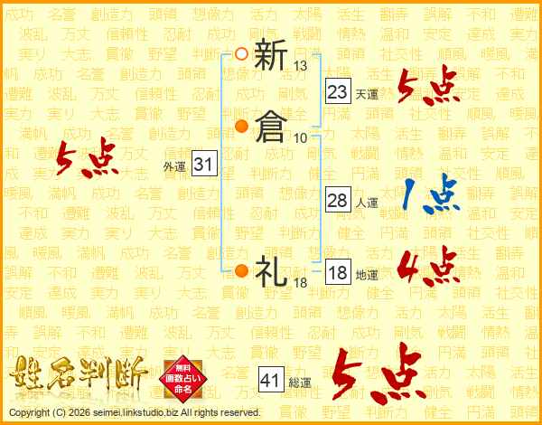新(13画)倉(10画) 礼(18画)