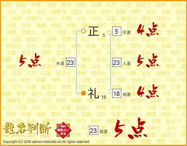 生活面を象徴する運勢です。外部から受ける影響力を表し、結婚運、家庭運や職場、環境への順応性を表します。総運から人運を引いた画数。姓や名が1文字の場合を除く。