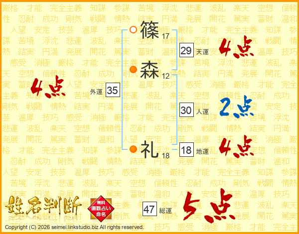 篠森礼さんの外運は35画の4点!