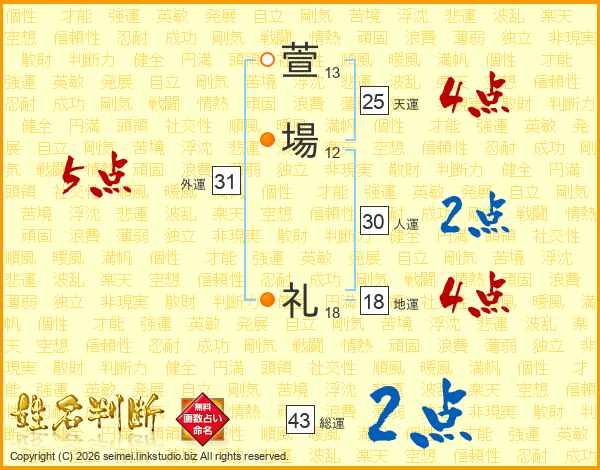 萱場礼さんの天運は25画の4点!