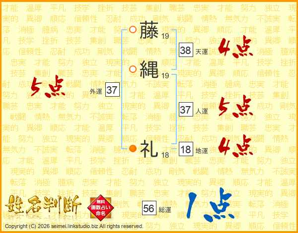 藤(19画)縄(19画) 礼(18画)
