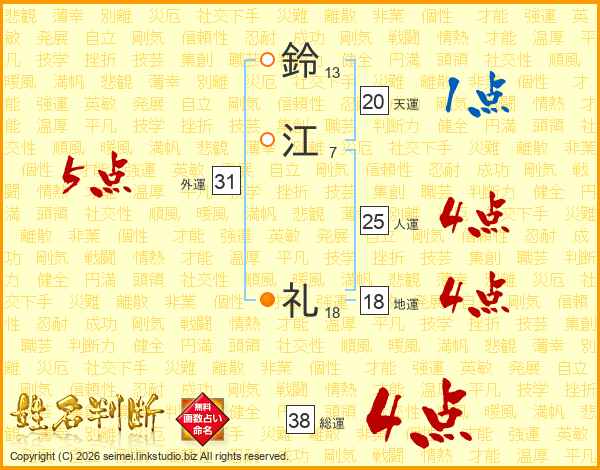 鈴江礼さんの総運は38画の4点!