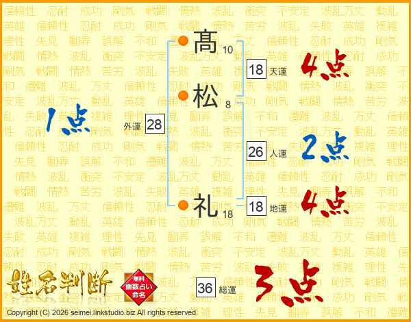 髙松礼さんの天運は18画の4点!