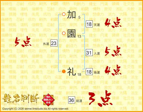 加園礼さんの外運は23画の5点!