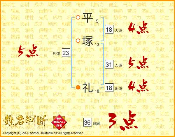 平塚礼さんの人運は31画の5点!