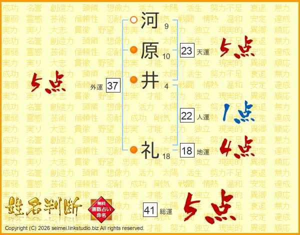河原井礼さんの総運は41画の5点!