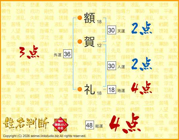 額(18画)賀(12画) 礼(18画)