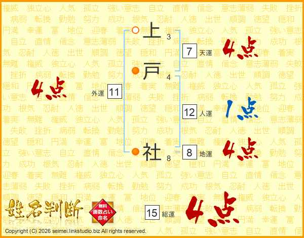 上戸社さんの総運は15画の4点!