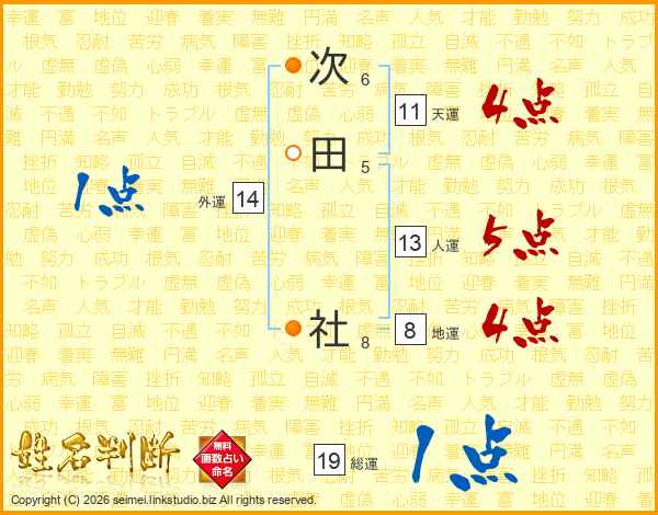 次田社さんの人運は13画の5点!