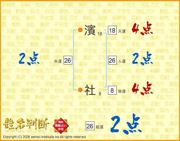 濱社さんの人運は26画の2点!