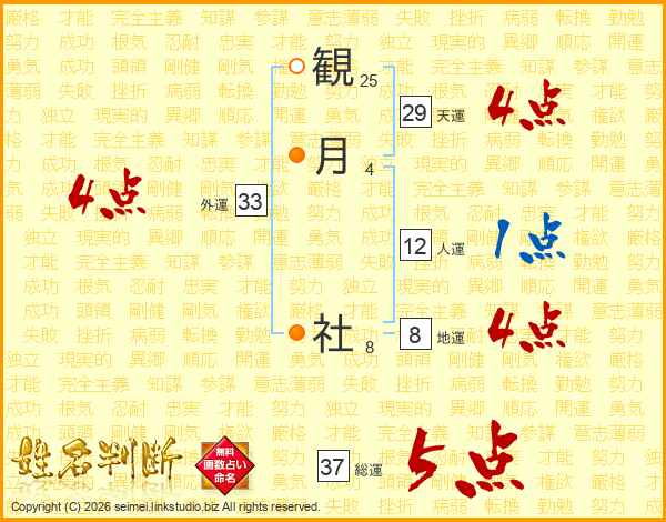 観(25画)月(4画) 社(8画)