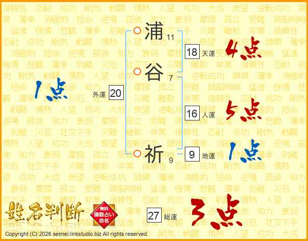 浦(11画)谷(7画) 祈(9画)