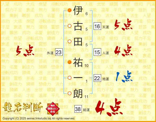 伊古田祐一朗さんの総運は38画の4点!
