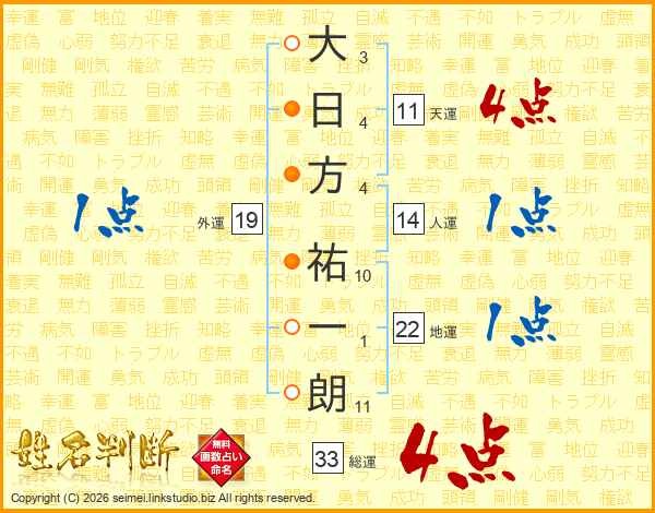大日方祐一朗さんの総運は33画の4点!