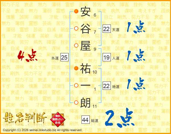 安谷屋祐一朗さんの総運は44画の2点!