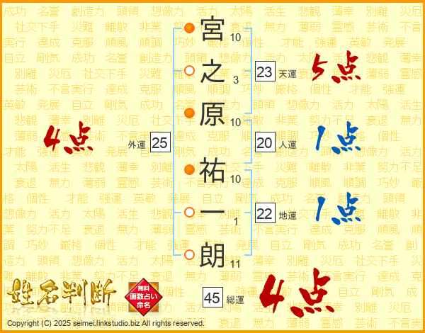 宮(10画)之(3画)原(10画) 祐(10画)一(1画)朗(11画)