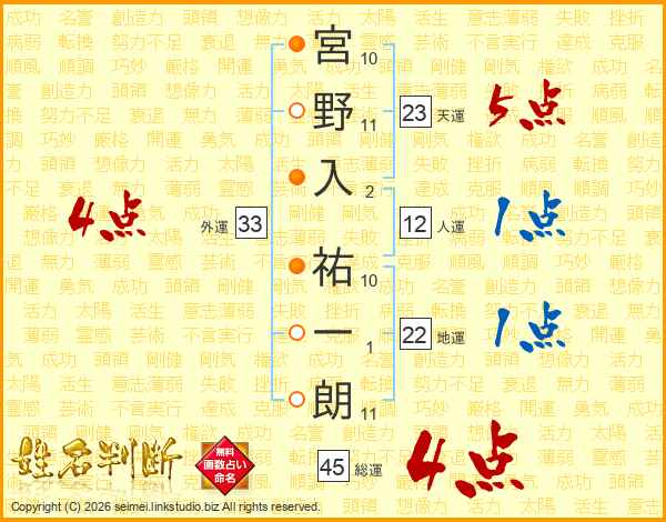 宮野入祐一朗さんの外運は33画の4点!