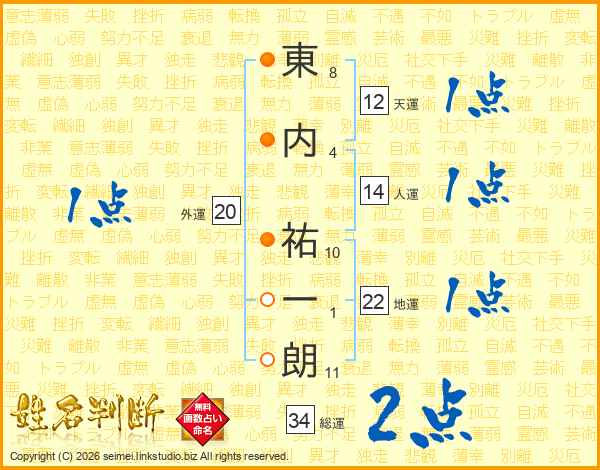 東内祐一朗さんの総運は34画の2点!