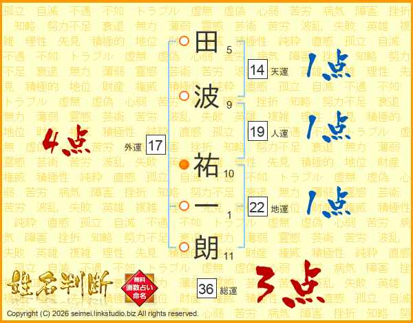 田波祐一朗さんの天運は14画の1点!