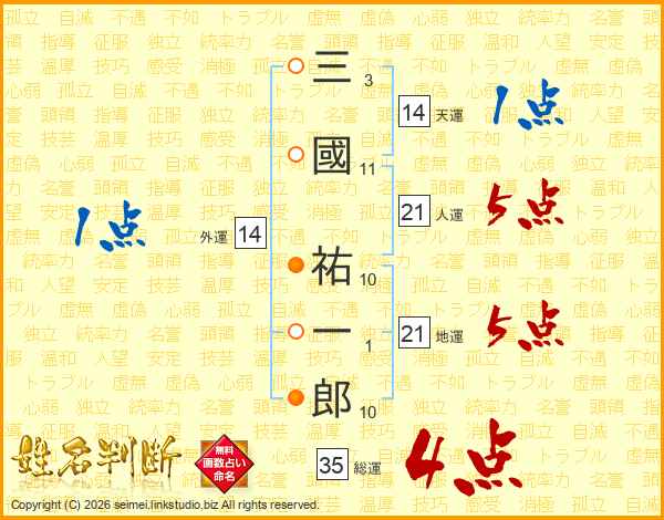 三國祐一郎さんの人運は21画の5点!
