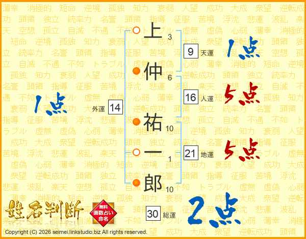 上仲祐一郎さんの総運は30画の2点!