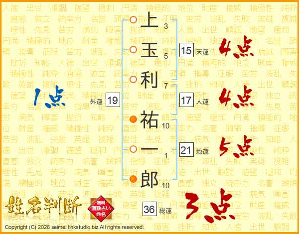 上玉利祐一郎さんの総運は36画の3点!