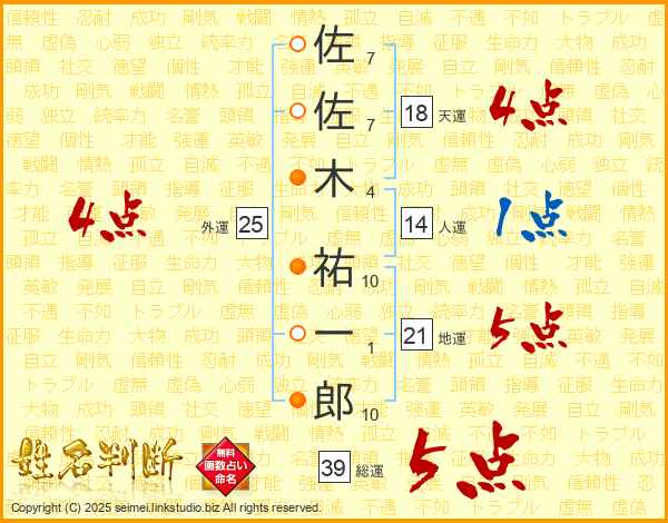 佐(7画)佐(7画)木(4画) 祐(10画)一(1画)郎(10画)