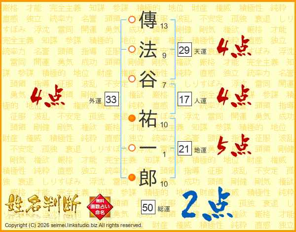 傳法谷祐一郎さんの天運は29画の4点!