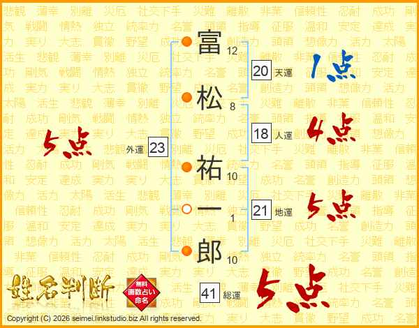 富(12画)松(8画) 祐(10画)一(1画)郎(10画)