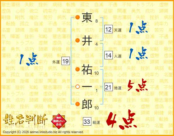 東井祐一郎さんの総運は33画の4点!