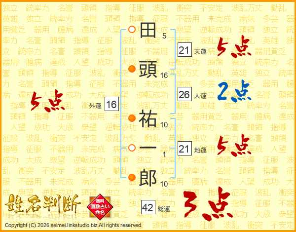 田頭祐一郎さんの天運は21画の5点!