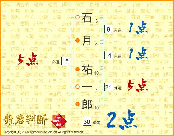 石月祐一郎さんの総運は30画の2点!