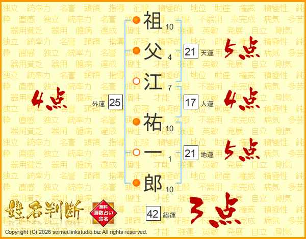 祖父江祐一郎さんの天運は21画の5点!