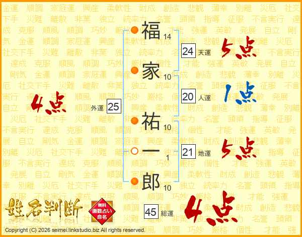 福家祐一郎さんの総運は45画の4点!