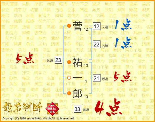 菅祐一郎さんの総運は33画の4点!