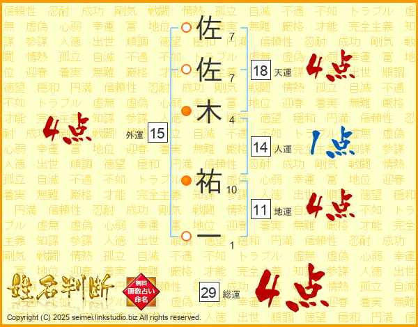 佐(7画)佐(7画)木(4画) 祐(10画)一(1画)