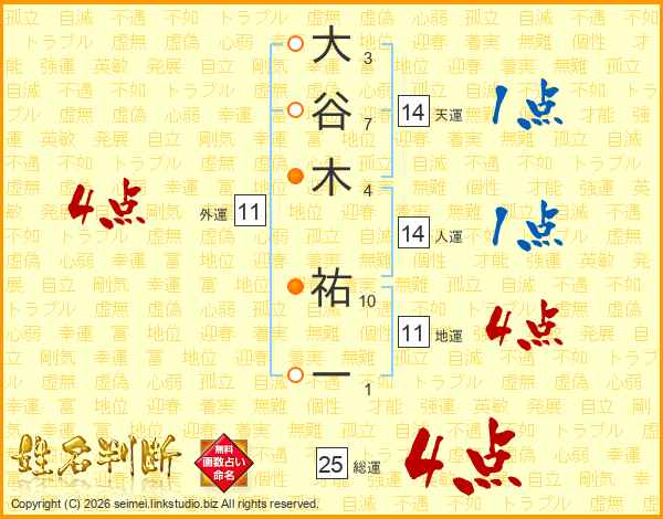 大(3画)谷(7画)木(4画) 祐(10画)一(1画)