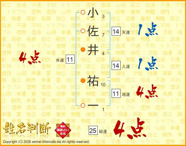 小(3画)佐(7画)井(4画) 祐(10画)一(1画)