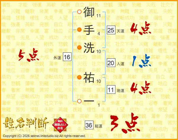 御手洗祐一さんの総運は36画の3点!