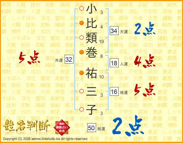 小比類巻祐三子さんの総運は50画の2点!
